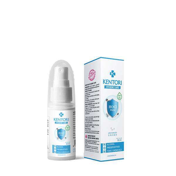 KENTORI Hygiene Care là sản phẩm nước điện phân kháng khuẩn chứa hoạt chất Hypochlorous acid (HOCl) được nghiên cứu, phát triển và sản xuất thành công tại Nhật Bản bởi sự hợp tác giữa Trường Đại Học Tohuku, Tập đoàn AZ (Nhật Bản) và Kentek Pharma (Việt Nam).